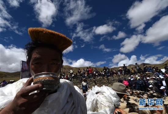 西藏數羊頭比賽:養羊數量最多的旺嘉暢飲青稞酒。