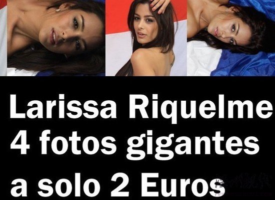 這個廣告在黑色背景上用醒目的白色大字標注:4張拉里薩的照片賣2歐元!2歐元折合人民幣不過十幾元,這個價格可謂是物超所值,相信會有很多人愿意省下這兩歐元去購買這位巴拉圭“乳神”的4張裸照。而這次成功的商業行為無疑已經讓該網站大大賺了一筆,也會讓拉里薩再度成為全世界關注的焦點。