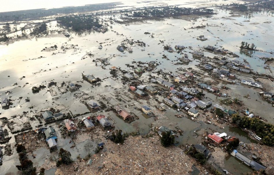日本海嘯過后的災(zāi)區(qū)照片,看不到一座房子了,到處是被海嘯沖刷后的建筑物碎片,日本地震海嘯災(zāi)區(qū)的凄慘畫面。
